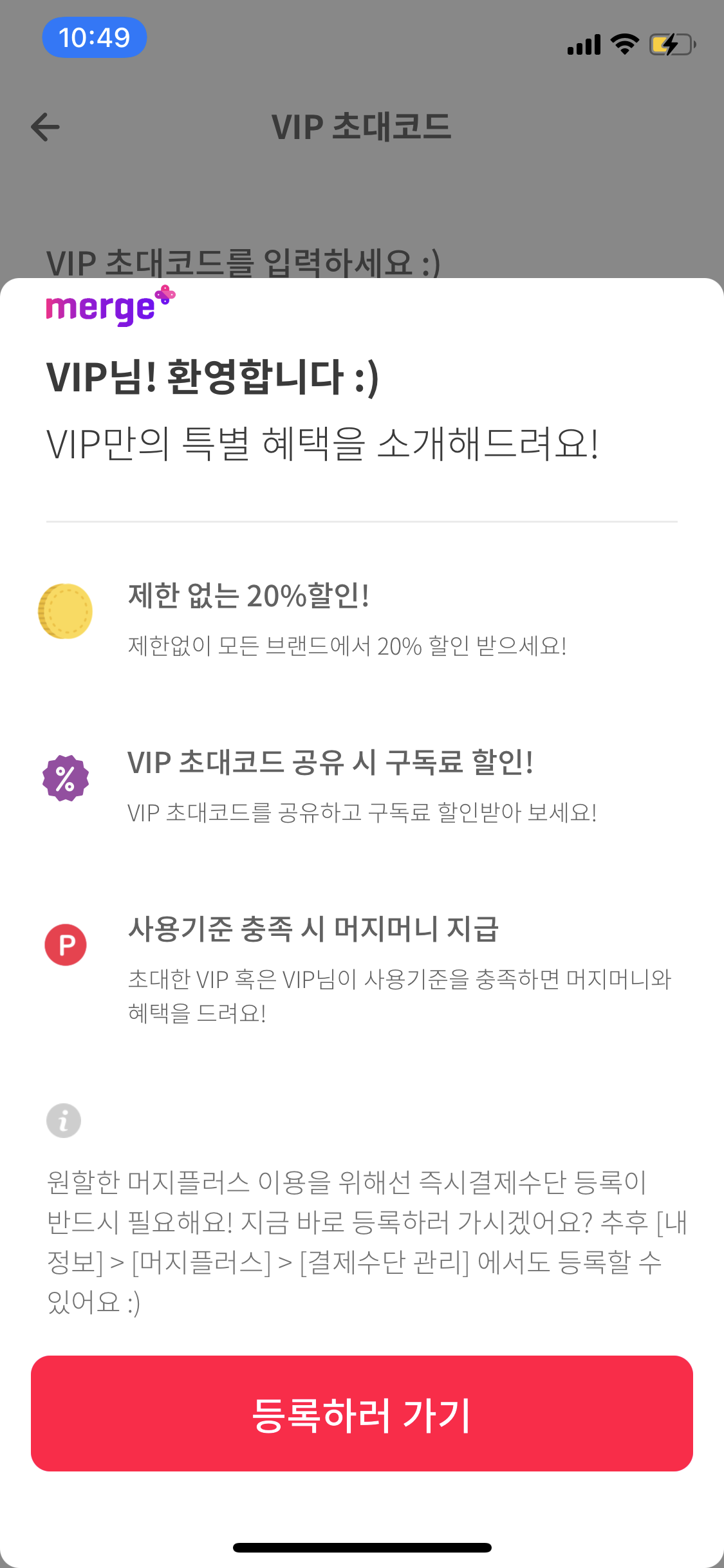 자, 여기까지만 해도 우린 너무나 합리적인 소비를 할 준비가 된것입니다 그런데 여기에 플러스로, 머지포인트 vip코드를 이용하면, 머지플러스에 가입 할 수 있습니다
